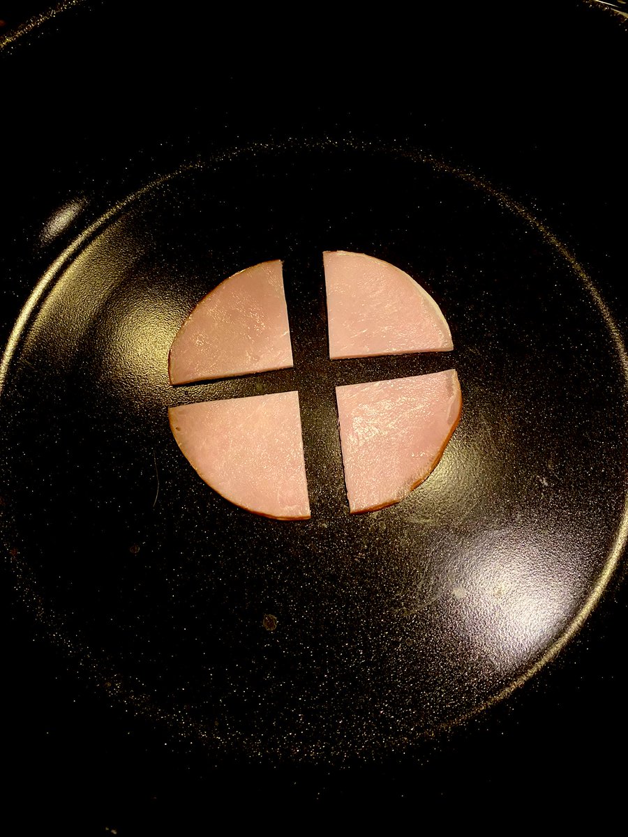 ハムエッグ作る時にハムをこう切れば卵が横流れしにくいし圧倒的に食べやすいということに何故この歳まで気付かなかったのか。 pic.twitter.com/qO103cHCOg