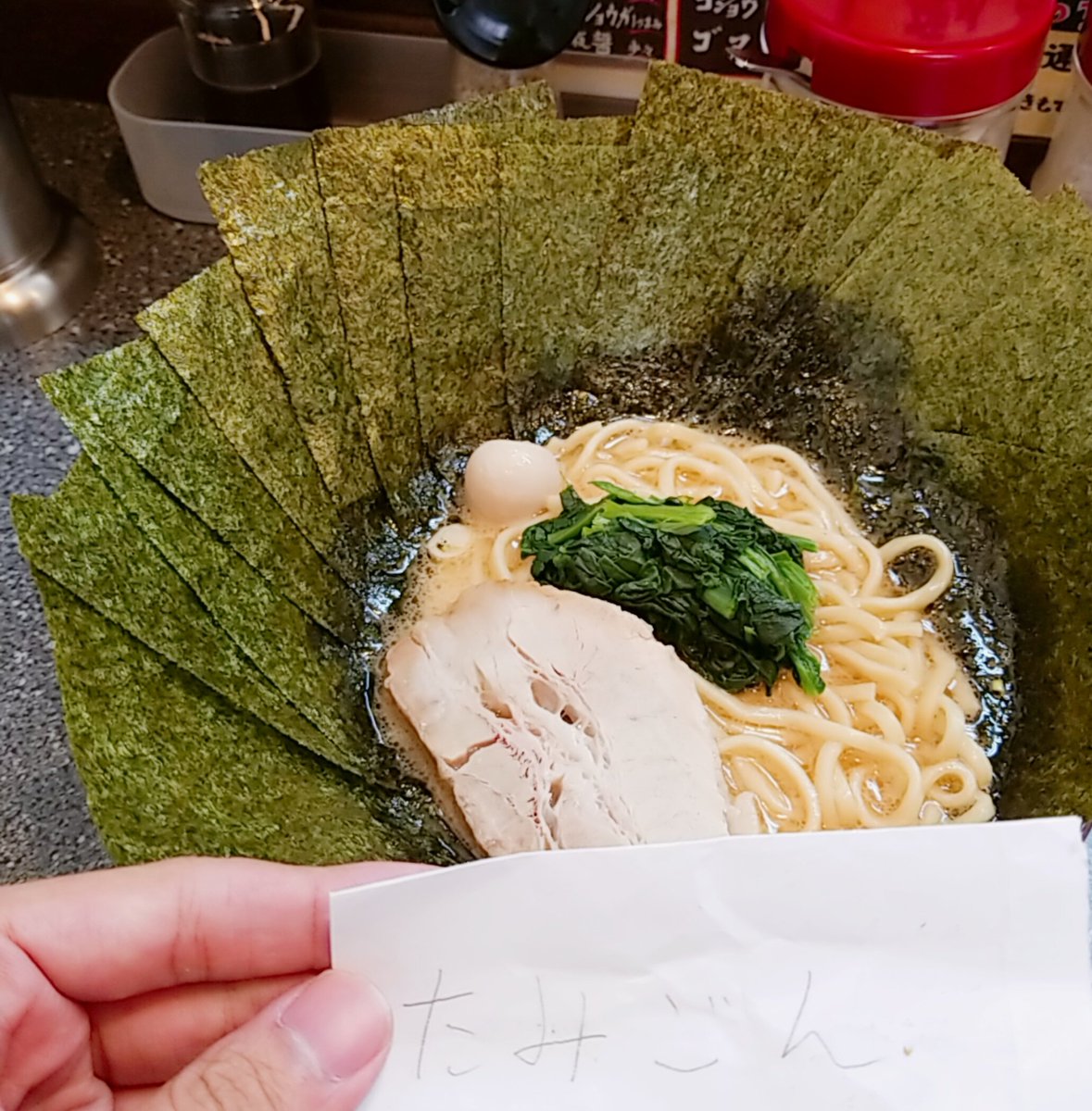 ラーメン屋行って海苔がサービスで10円だったからたくさん食べようと思ったら1セット5枚だった pic.twitter.com/POY3GLHCMy